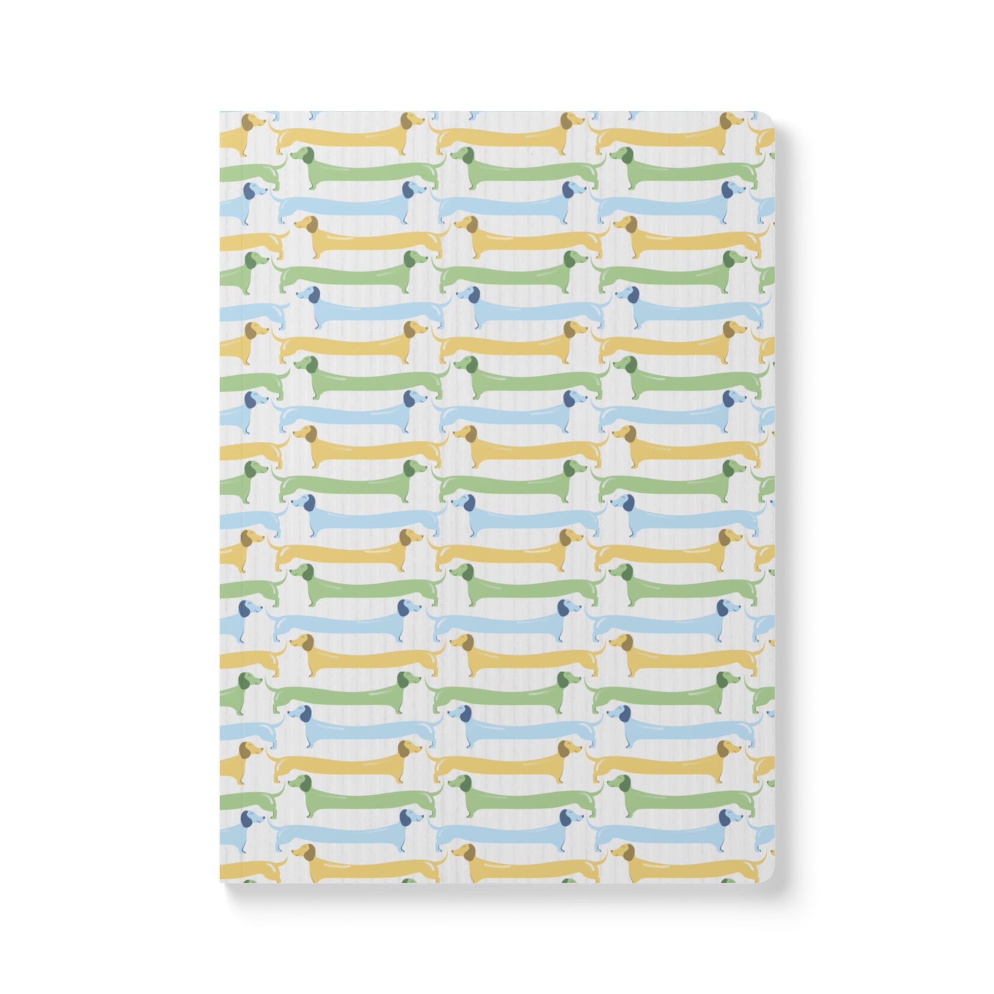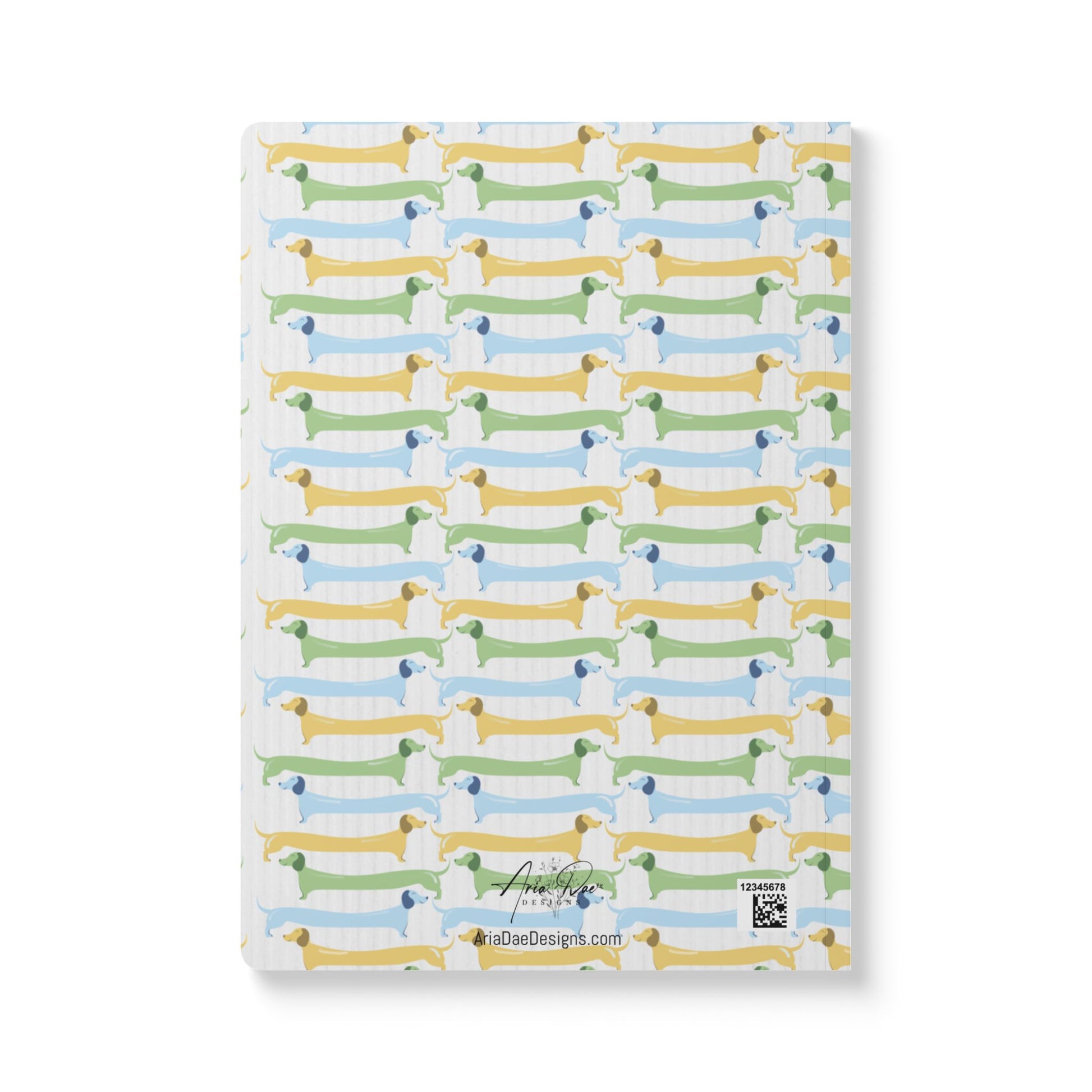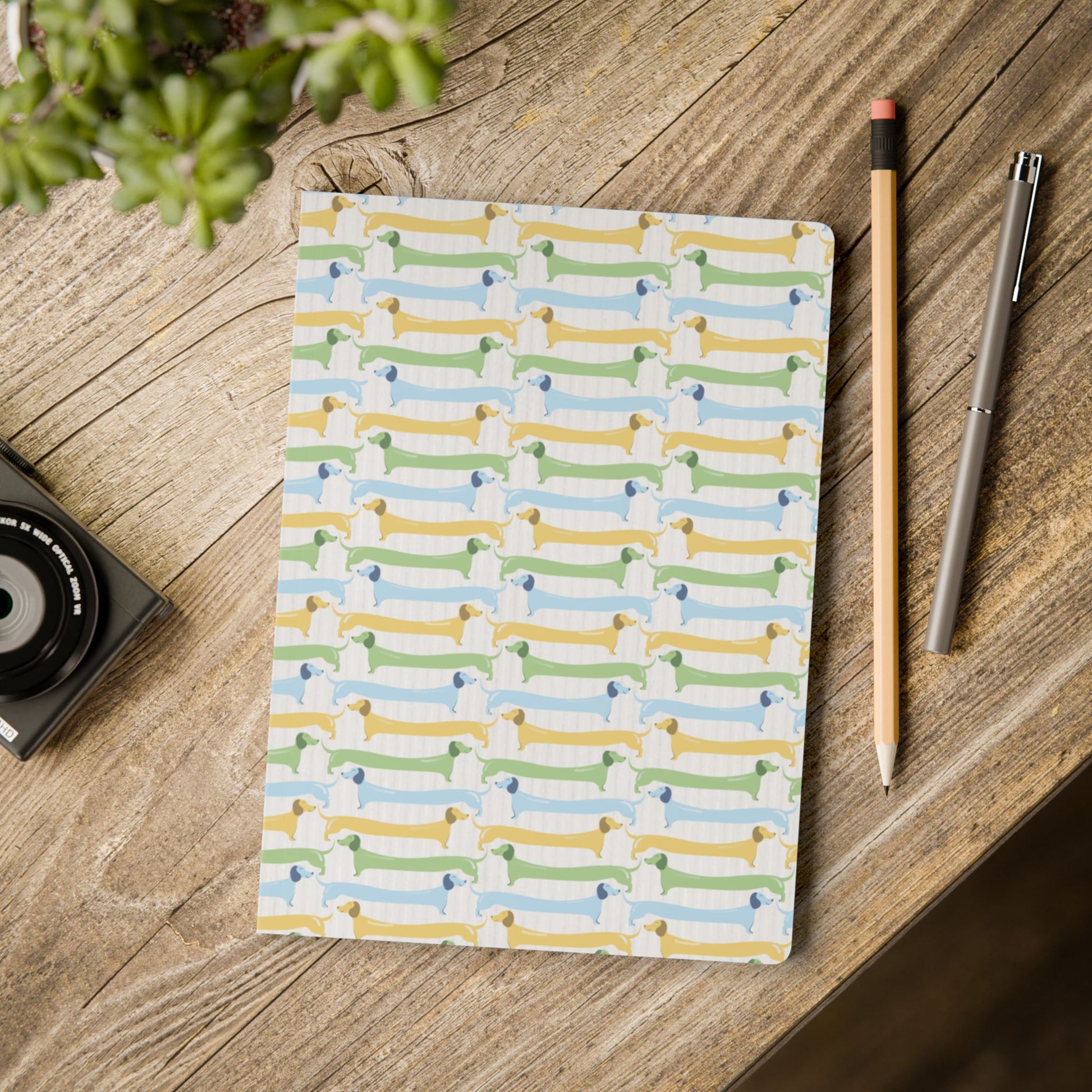 This dachshund notebook features vibrant colors and a soft satin finish cover with rounded corners. Perfect for dog lovers and journal enthusiasts, this journal is ideal for daily note-taking, sketching, or bullet journaling. It can be a great gift for birthdays, holidays, mothers day gift, Fathers Day gift, birthday gift, or as a back-to-school essential. Doxie lovers will adore this fun notebook. Doxy, Weenie dog, long dog, dog mama, dog dad, gifts for journaling, gifts for writers. dachshund lover, wiener dog.