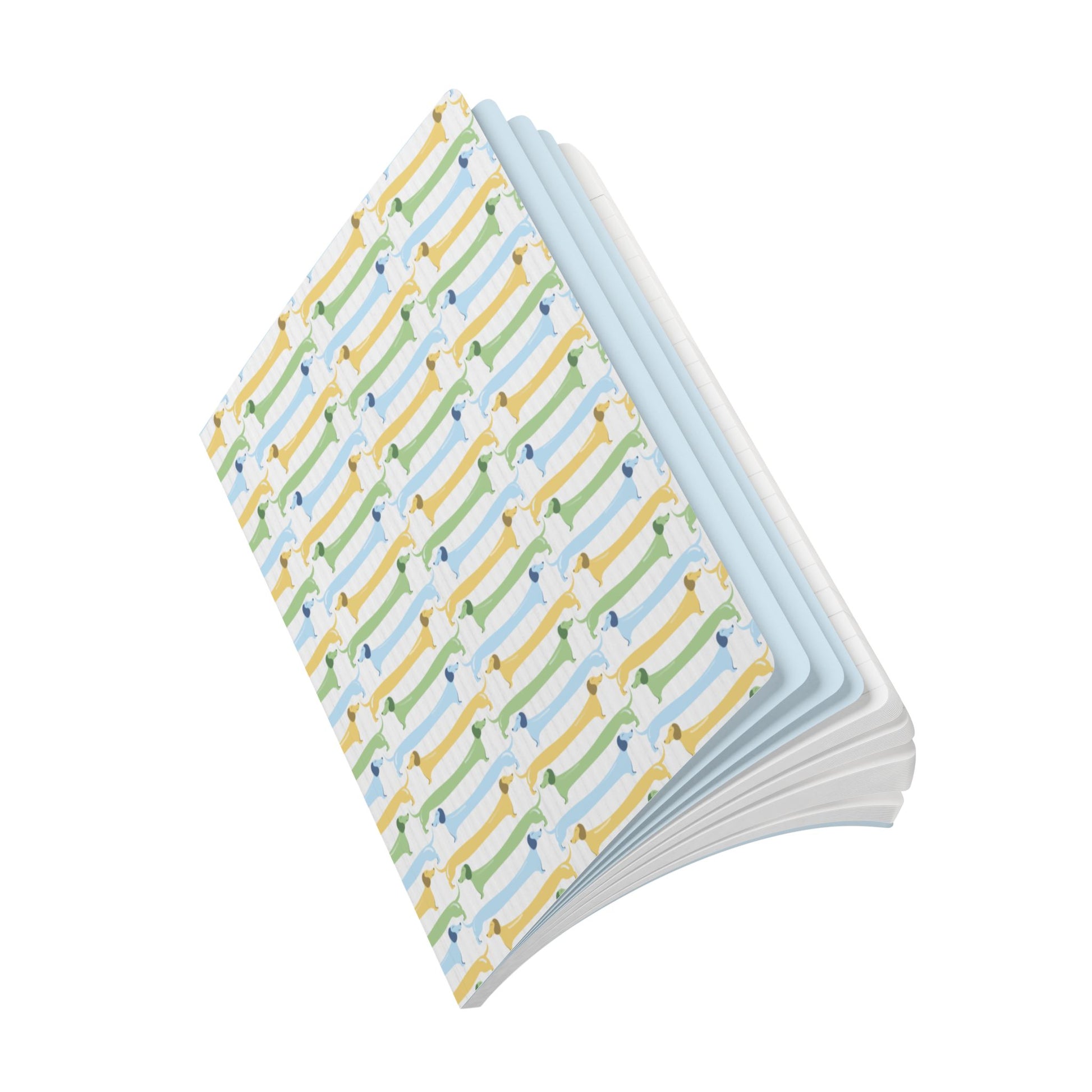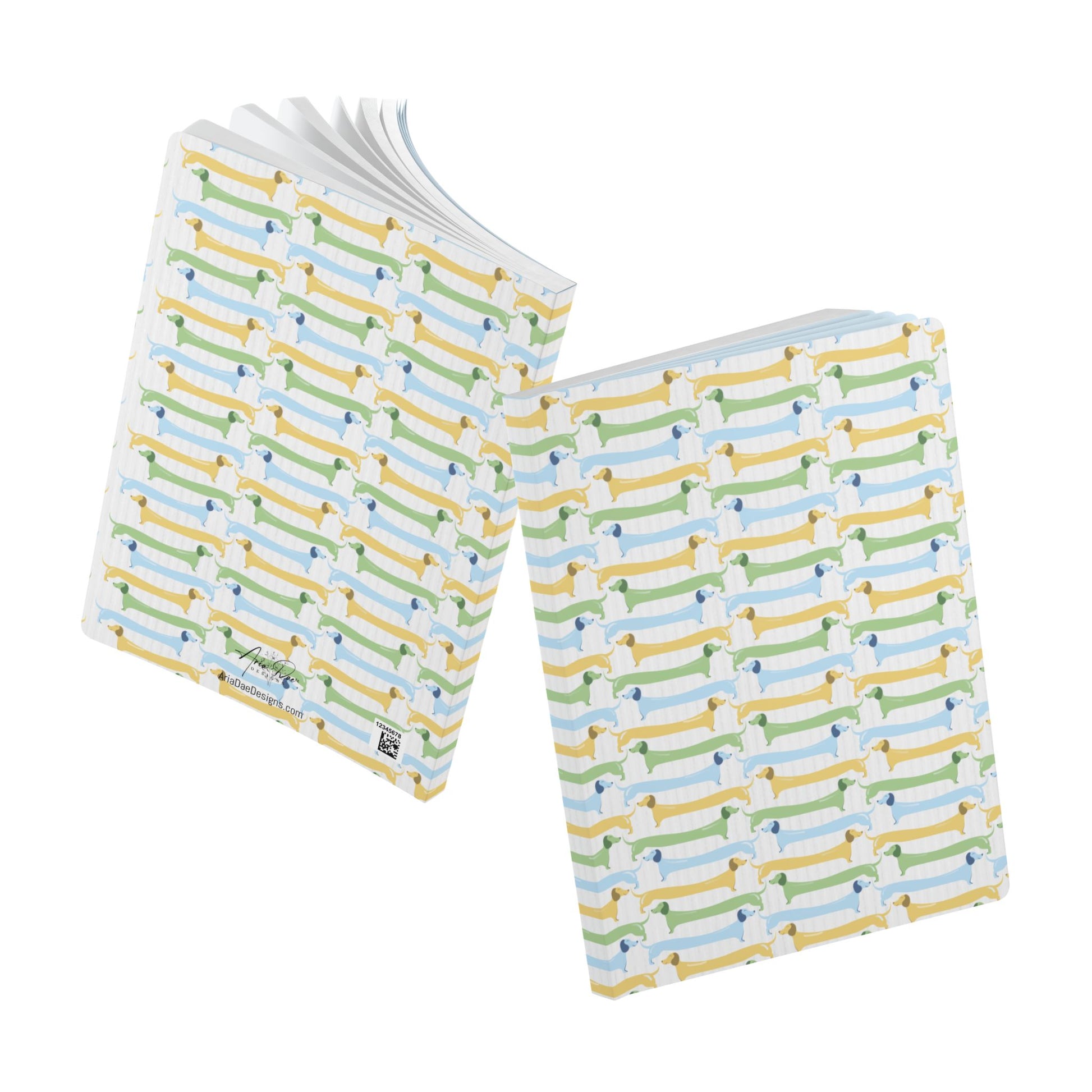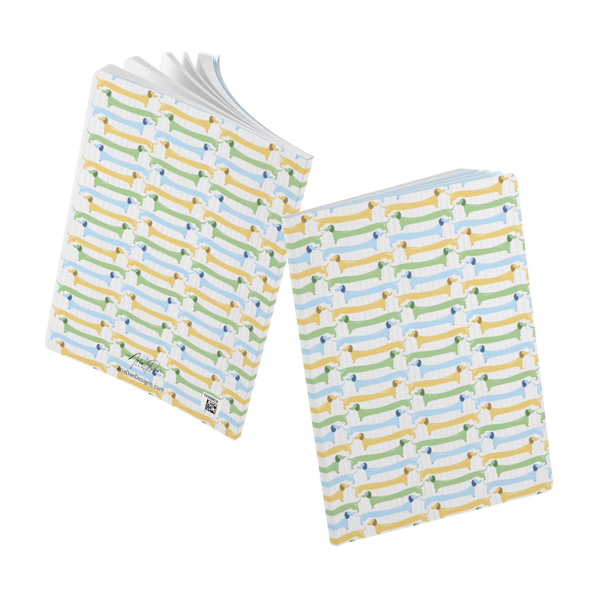 This dachshund notebook features vibrant colors and a soft satin finish cover with rounded corners. Perfect for dog lovers and journal enthusiasts, this journal is ideal for daily note-taking, sketching, or bullet journaling. It can be a great gift for birthdays, holidays, mothers day gift, Fathers Day gift, birthday gift, or as a back-to-school essential. Doxie lovers will adore this fun notebook. Doxy, Weenie dog, long dog, dog mama, dog dad, gifts for journaling, gifts for writers. dachshund lover, wiener dog.