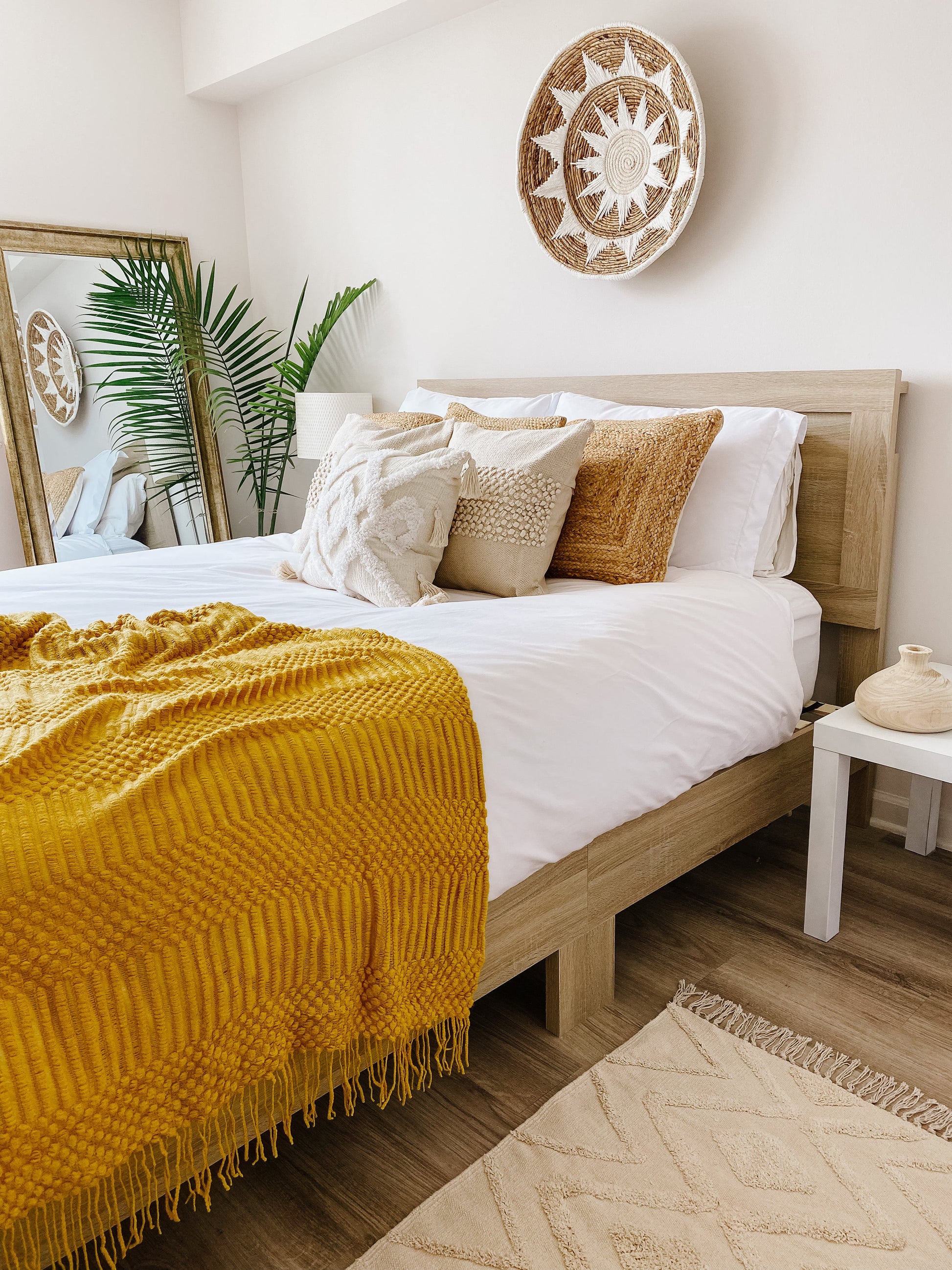Wrap yourself in warmth and comfort with our exquisite mustard yellow throw blanket. Crafted to perfection, its soft texture and inviting hue create an atmosphere of cozy serenity. The delicate fringe adds a touch of rustic charm, making it the perfect addition to any living space. Whether draped over your couch or nestled on your favorite armchair, this throw blanket brings both style and comfort to your home.