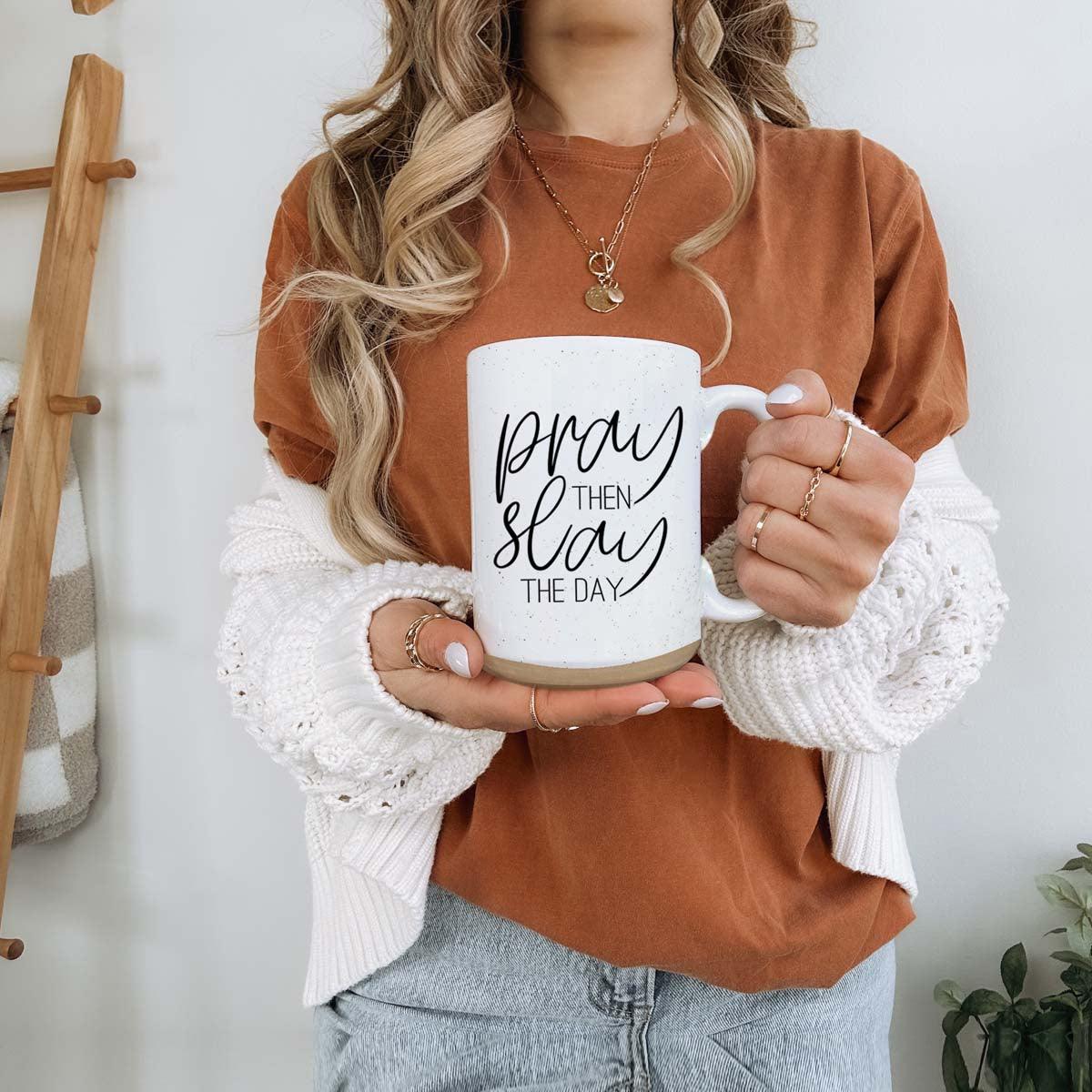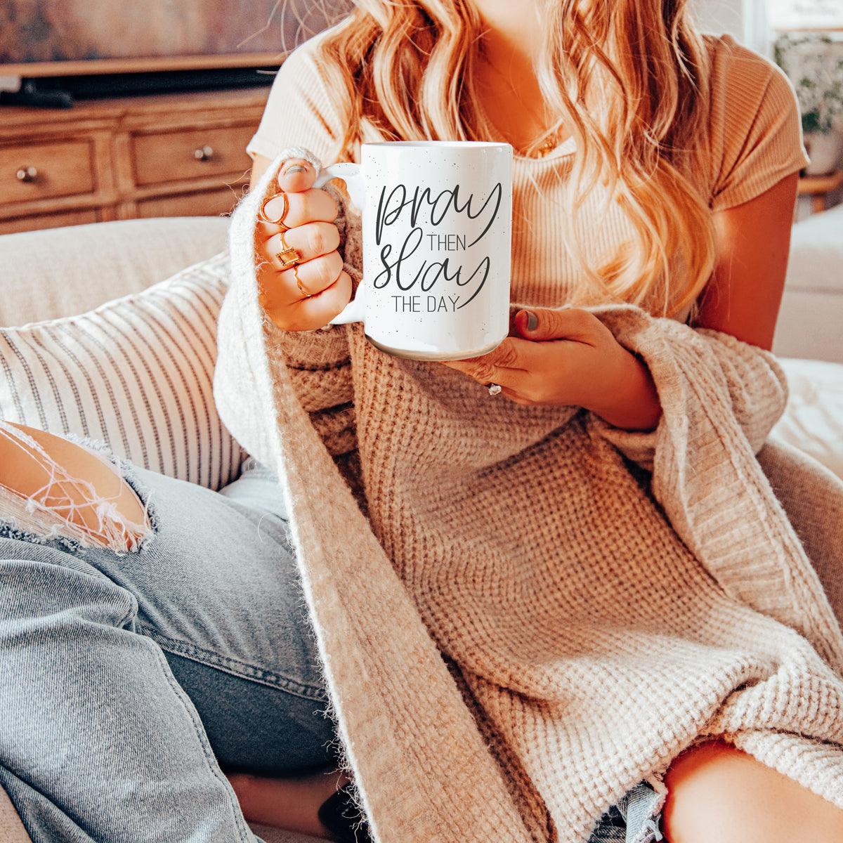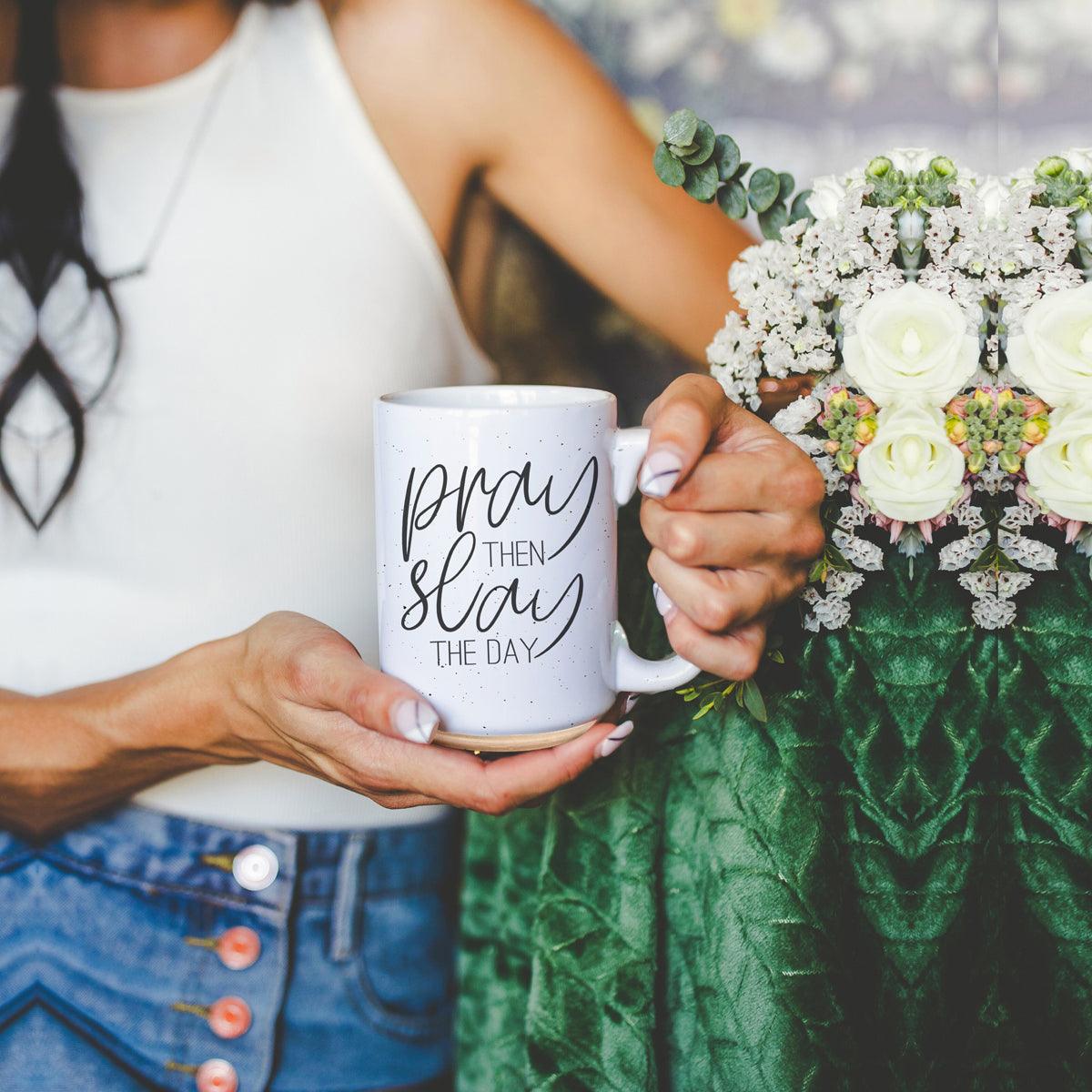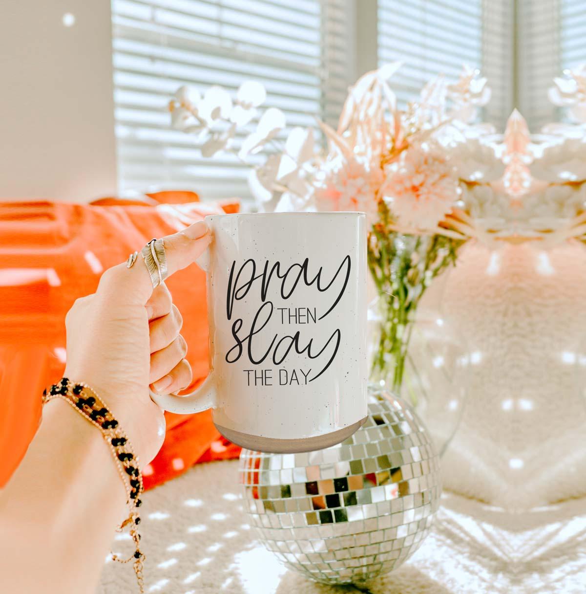 So why settle for ordinary when you can start your day with a dose of inspiration? Embrace the power of prayer and the thrill of triumph with our "Pray Then Slay the Day" Ceramic Mug. Because when you combine faith with determination, there's nothing you can't achieve. So go ahead – pray, then slay the day like the boss you are!