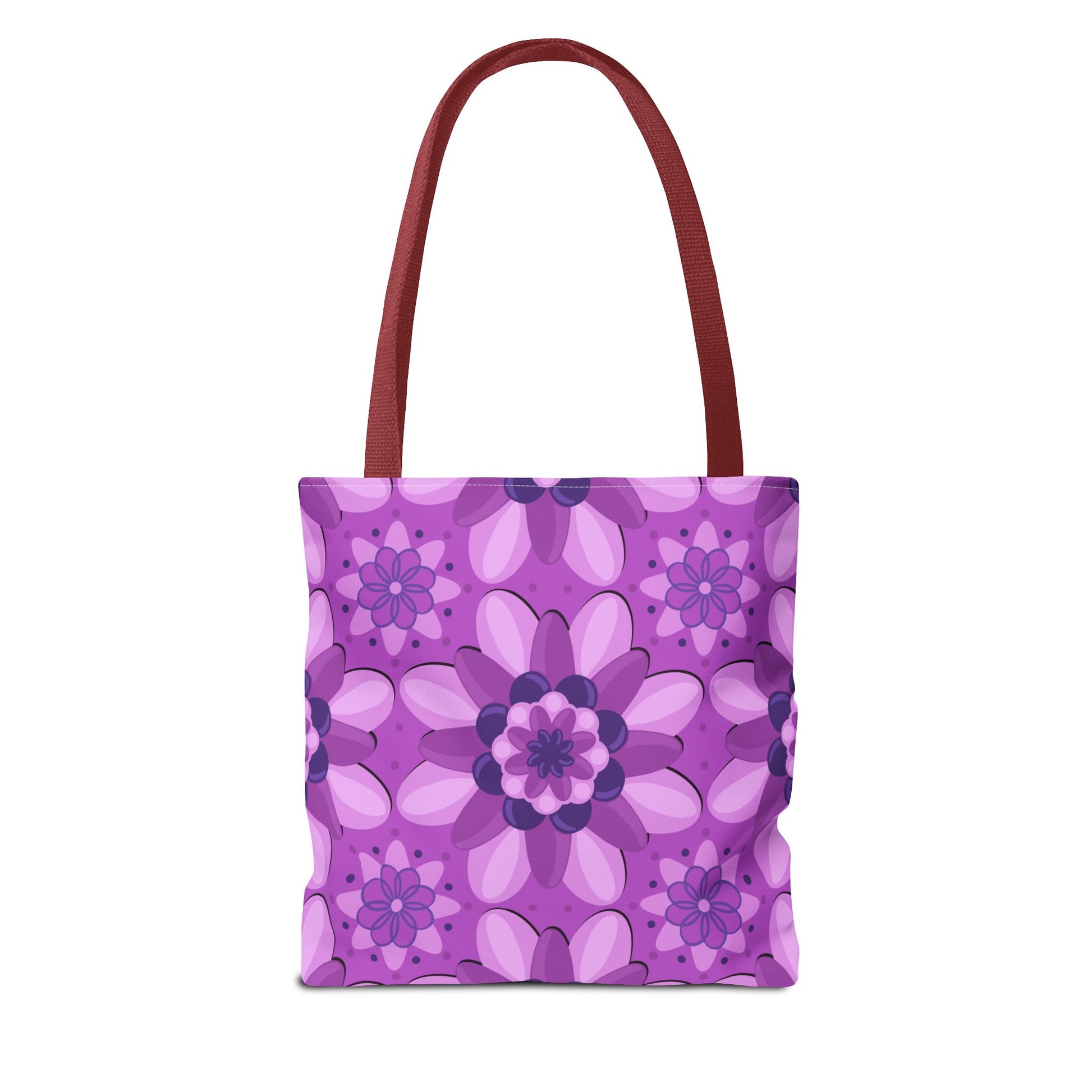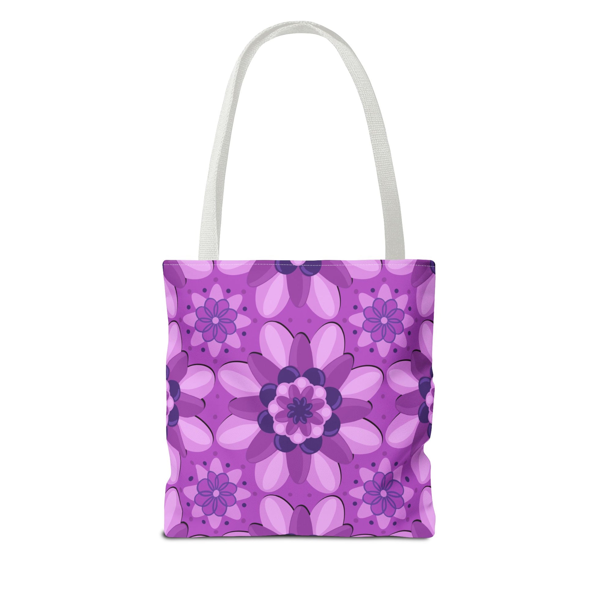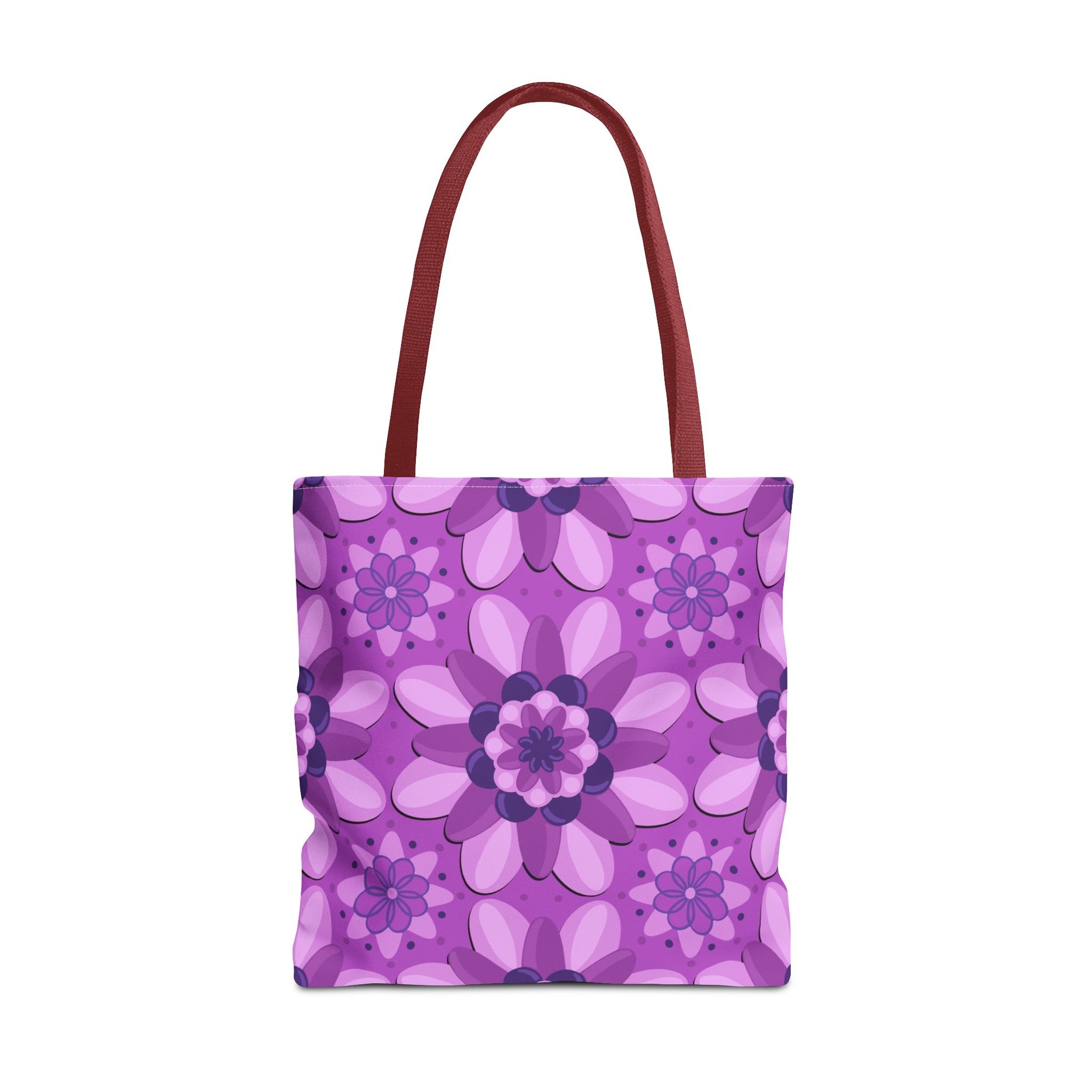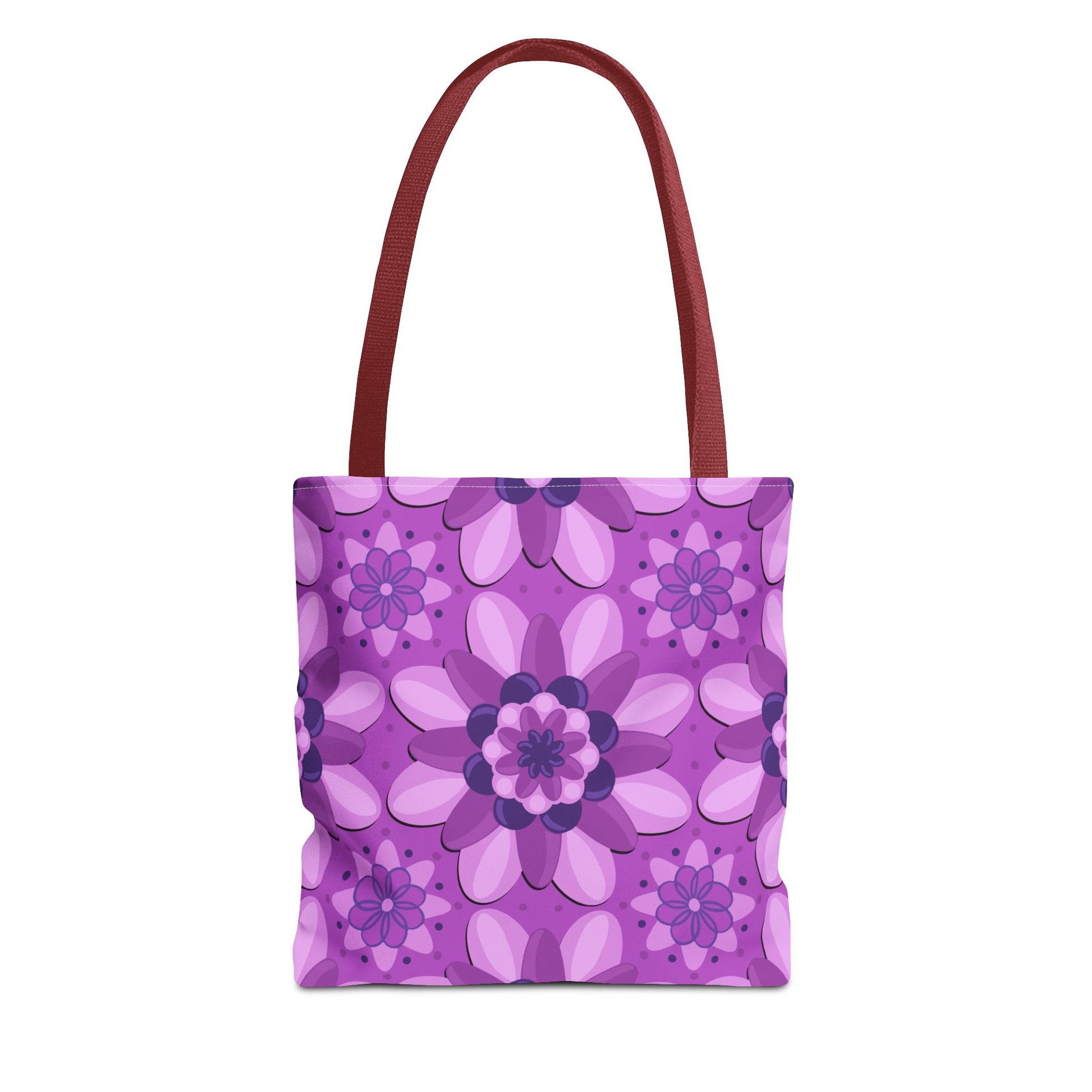 This purple floral tote bag is perfect for adding a touch of color to your everyday errands. The design brings a whimsical and feminine vibe, making it a great accessory for spring and summer. Ideal for purple lovers and those who appreciate unique floral patterns. Perefect for a Mother's Day gift, teachers gift, gift for her, or teens.