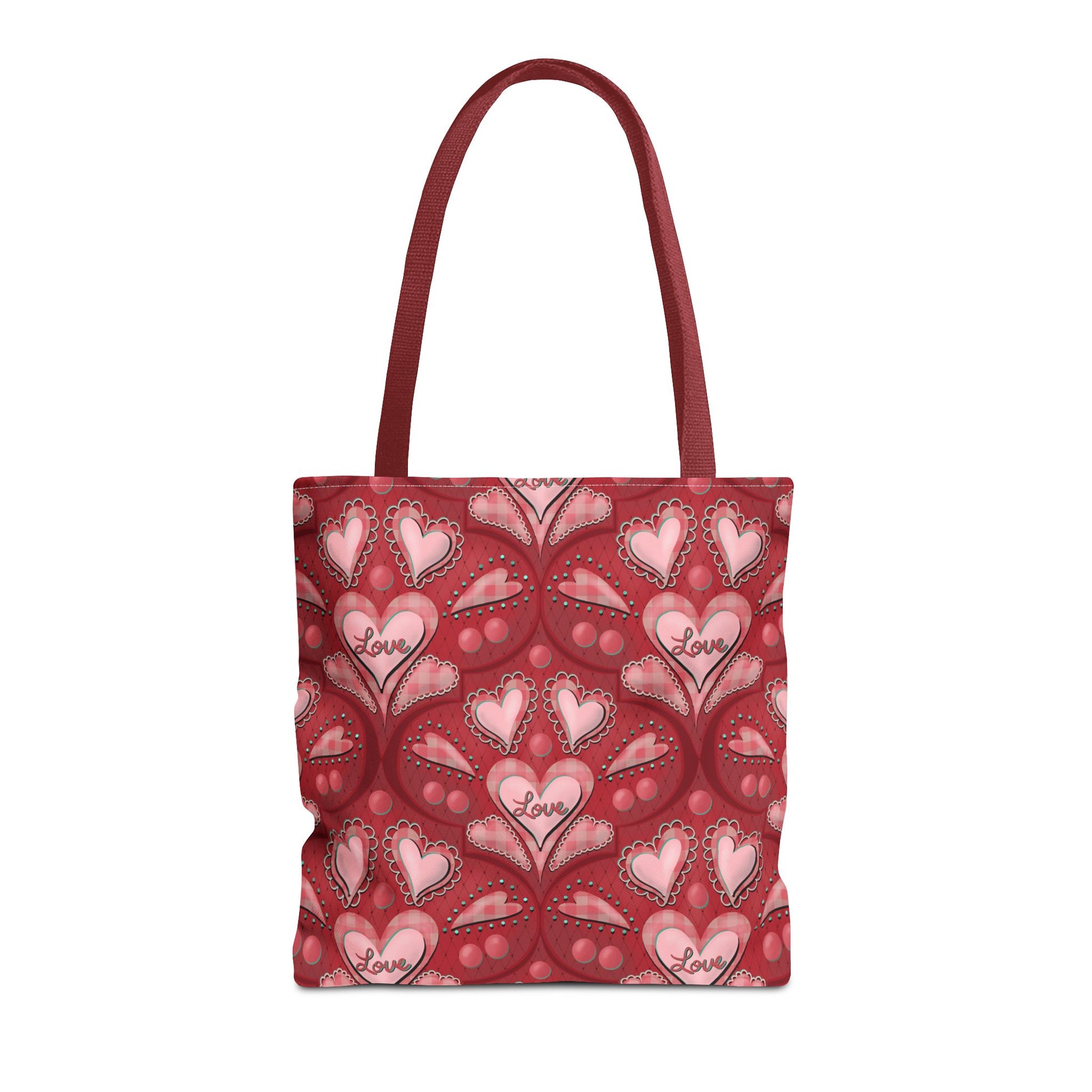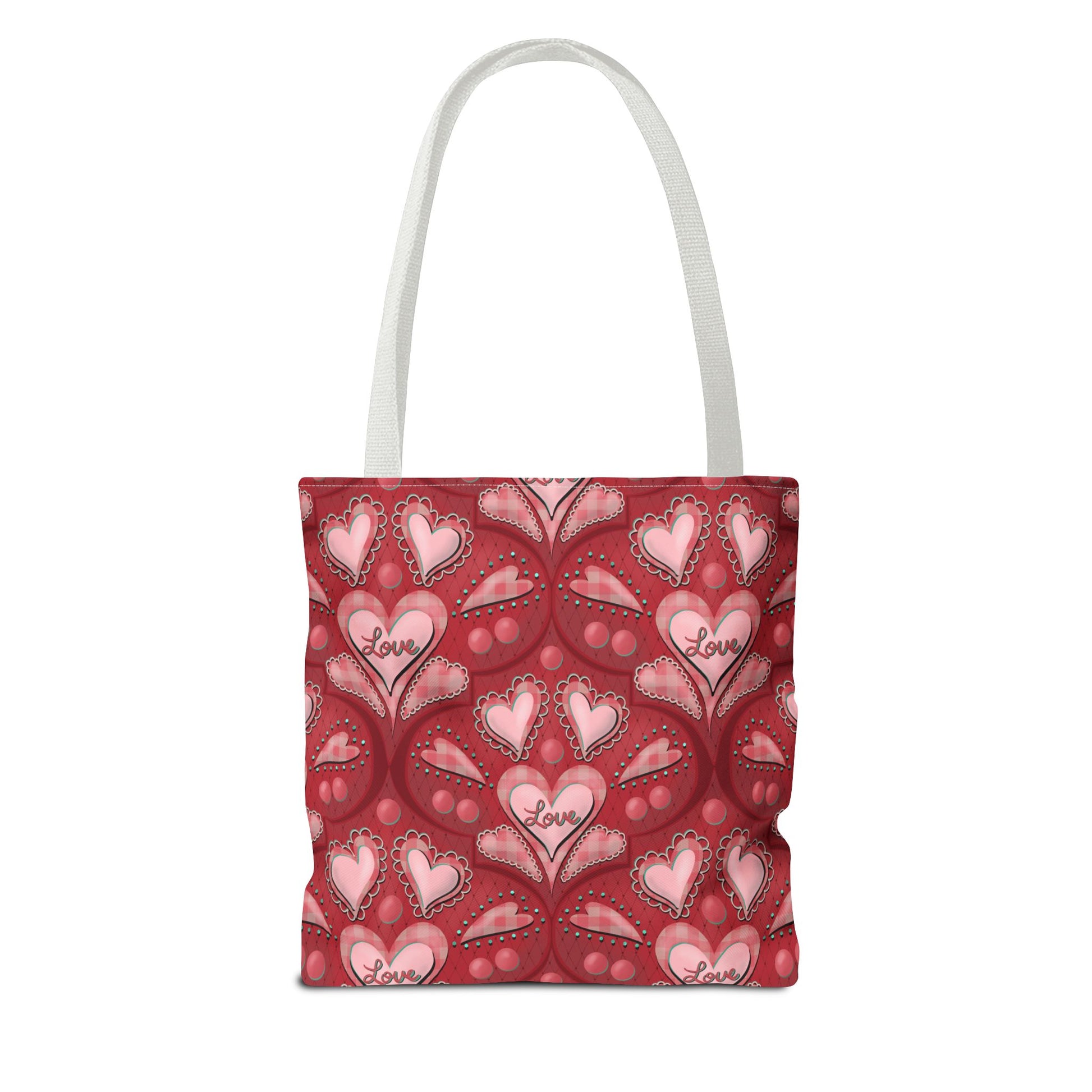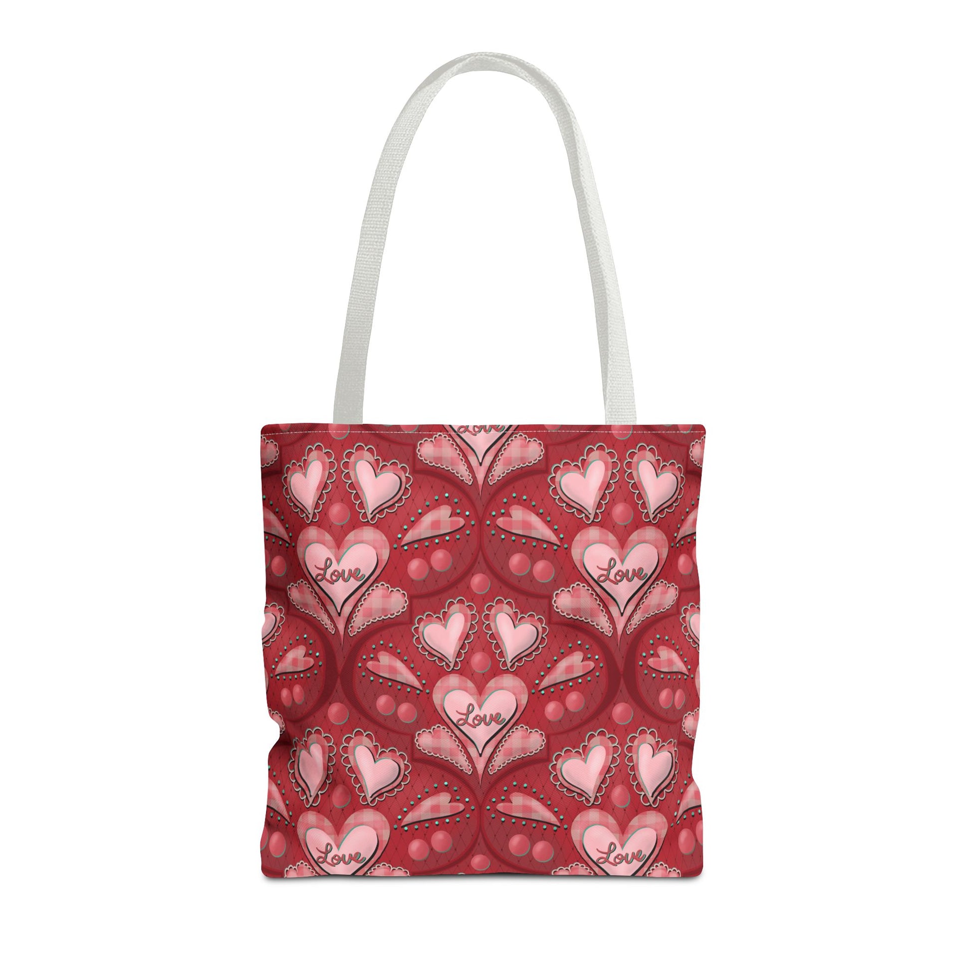 This Red Hearts Tote Bag exudes love and warmth, making it perfect for everyday use or as a thoughtful gift for someone special. With its reinforced stitching on handles and boxed corners, this durable tote bag is designed to withstand daily wear and tear. The 100% polyester fabric ensures longevity and quick drying, while the 3 color handle options allow for customization to suit any style.