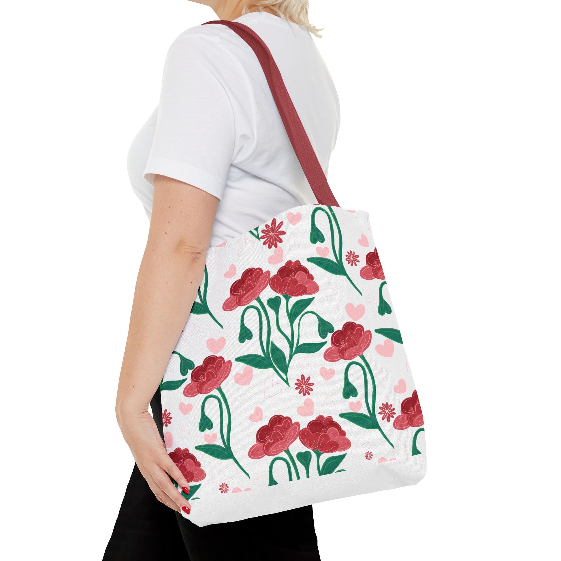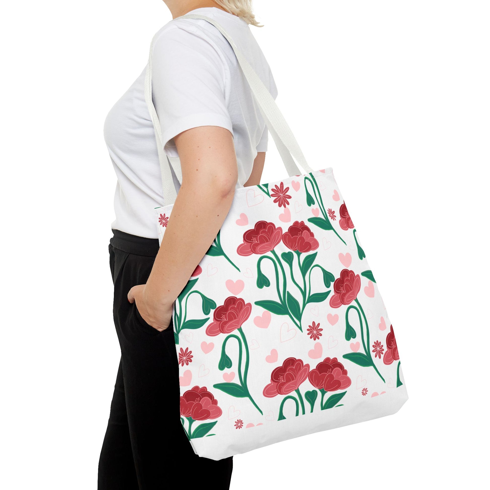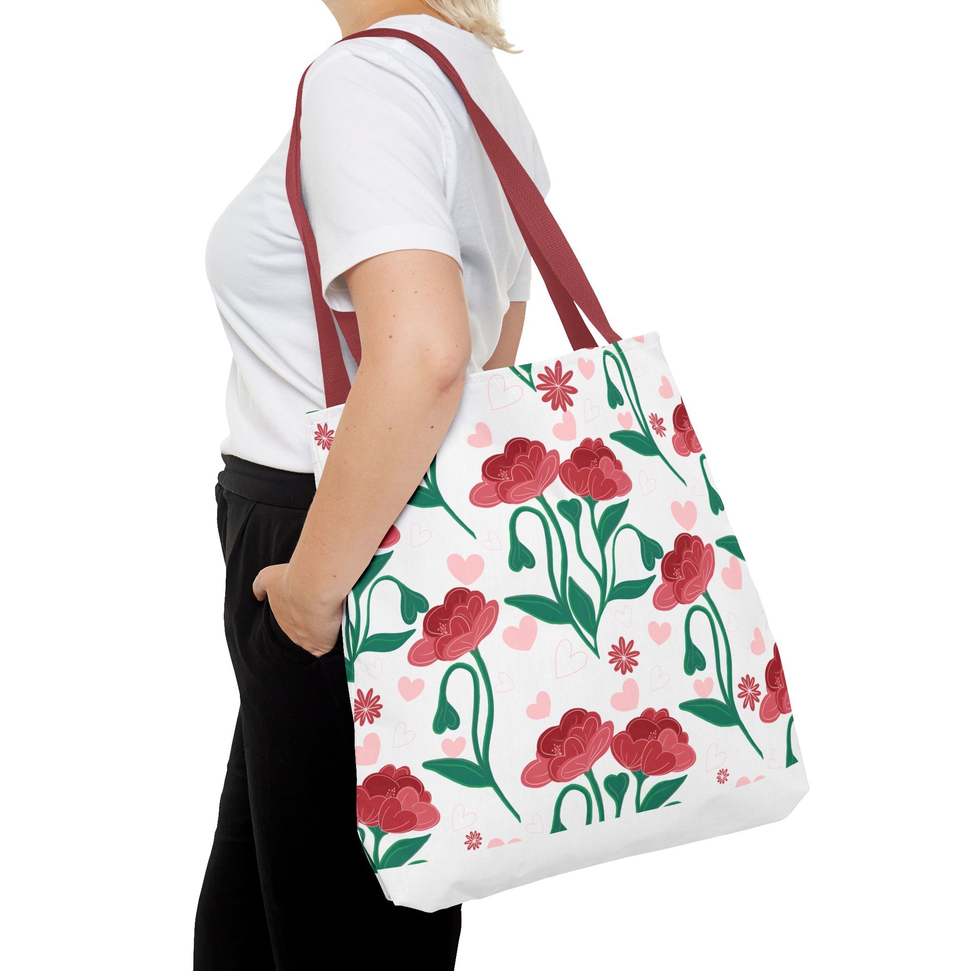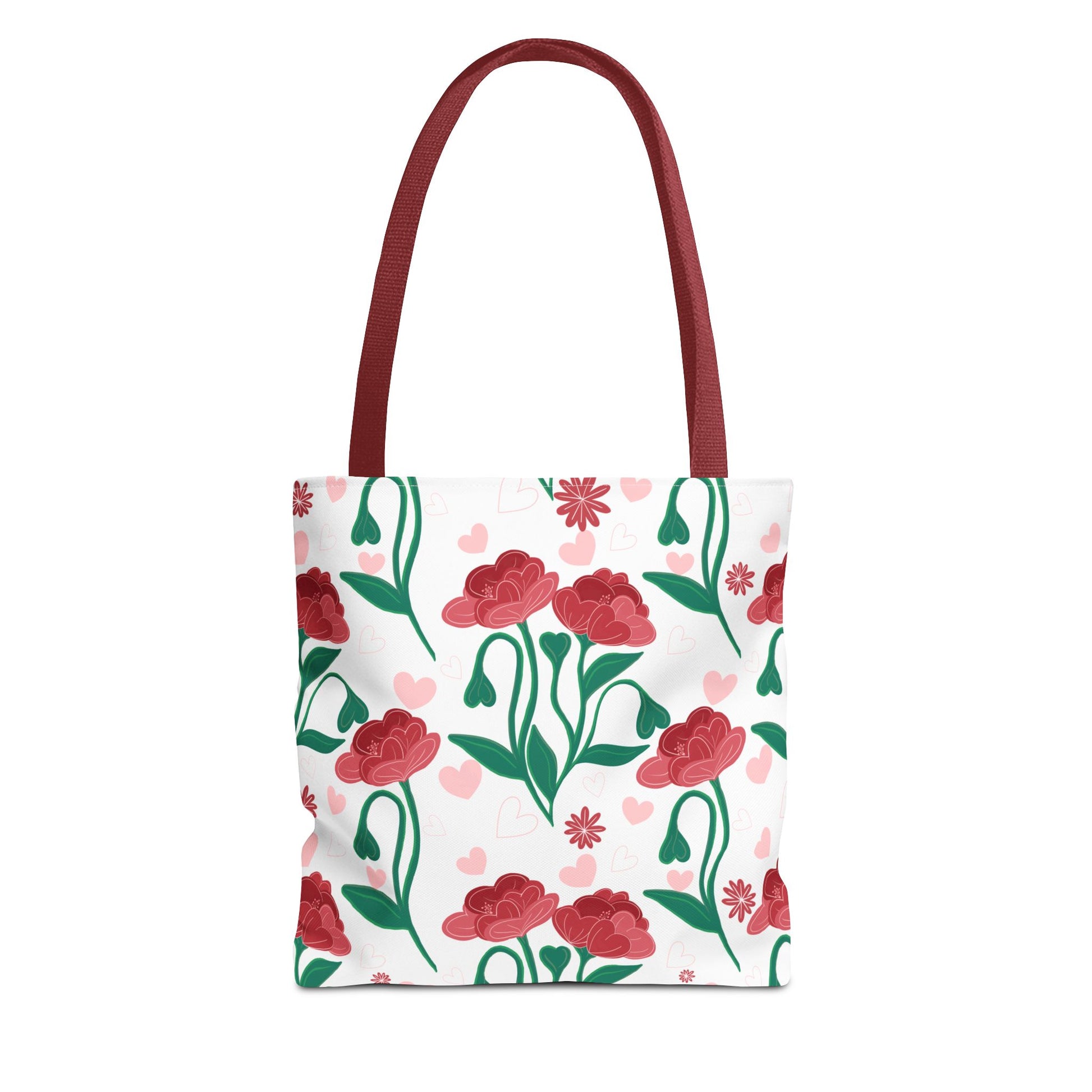 This Valentine's Day tote bag is perfect for running errands, going to the beach, or carrying essentials to work or school, or as a shopping bag. The bright colors and unique original design give off a fun and playful vibe, appealing to those who appreciate creative and stylish accessories. Perfect for as a gift for mom, as a birthday gift, for beach trips, shopping excursions, and everyday use.