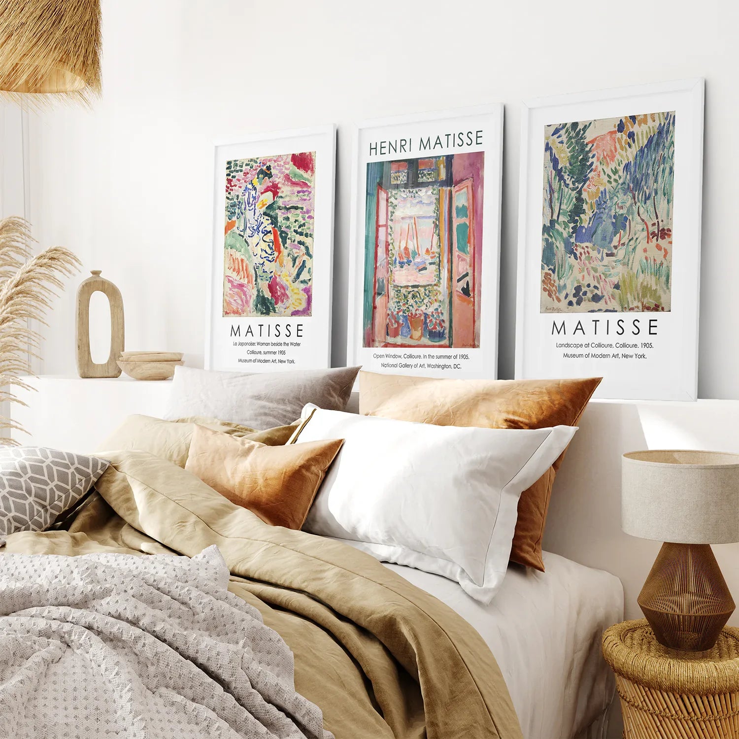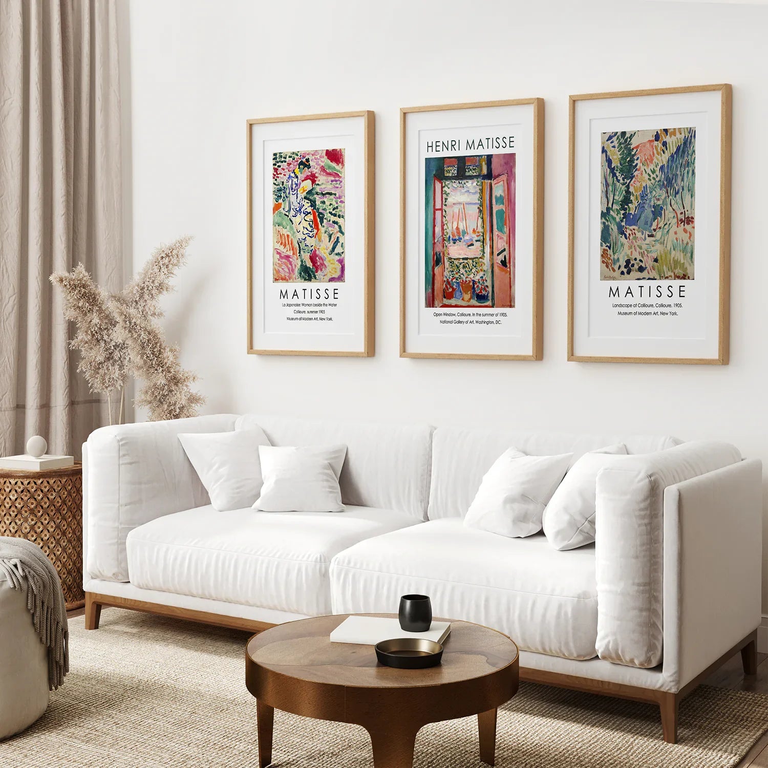 Henri Matisse's vivid landscapes are depicted on these posters. This vintage wall art collection will add a touch of abstract beauty to your walls. This set will look great in any of your rooms. Try using it in thin wood frame with a mat or even on canvas.